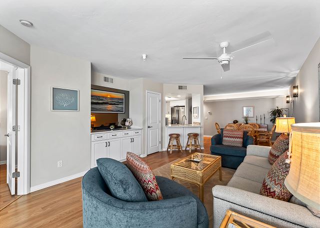 Enjoy access to one of the 5 heated pools, plus hot tub and gas BBQ grills at each pool area. 11 hard tennis courts available for play and always complimentary. Our recreation center, Coconuts, offers a variety of rentals to include golf carts, bicycles, kayaks and beach umbrellas. Our full service concierge can also arrange for everything from massages to fishing charters. Join a complimentary water aerobics class, nature walk or yoga on the beach when scheduled. Whether you wish to spend your time with us on the go or taking it slow, you’re sure to enjoy your new Memories at the Speed of Old Florida.